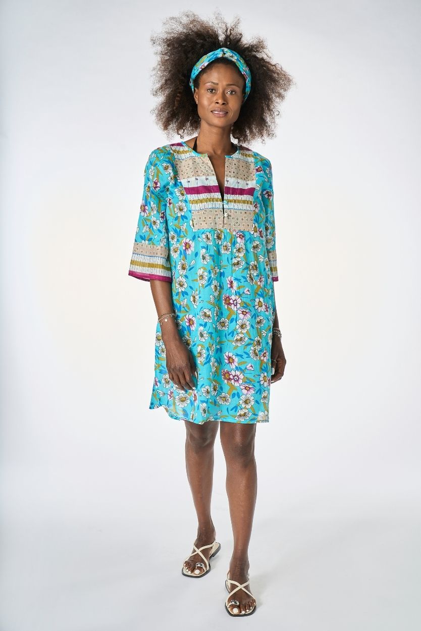 Caftano con manica a tre quarti, tasche e ricamo sullo scollo.
